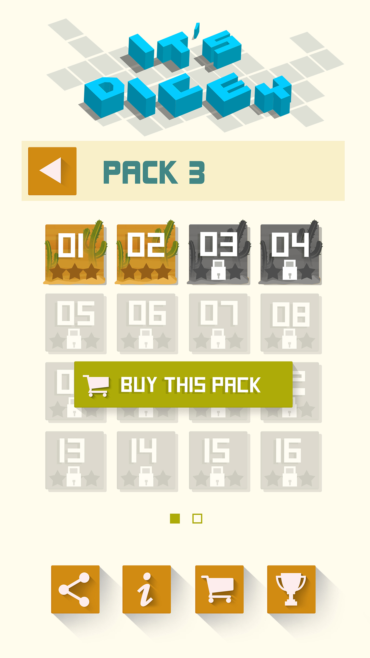 It’s Dicey is a challenging and addictive puzzle game. The main objective of this fun game is to make the dice reach the end point by matching the dots on it, within the given number of steps. Keep collecting stars on your way to the end point to progress through the levels! It’s Dicey has 8 Packs with more than two hundred levels which makes it a fun puzzle game. Each pack has a new visual theme along with exciting features at each level that make it even more challenging. Each puzzle has multiple solutions.... you have the freedom to choose!!!